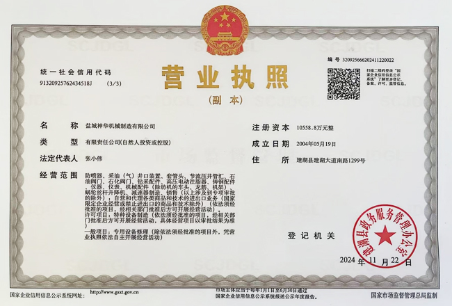 鹽城神華機械制造有限公司為中國石油、石化、海洋物資裝備(集團)總公司的網(wǎng)絡成員單位,公司注冊資金10558.8萬元整,公司通過了ISO9001國際質量體系認證,取得了中國船級社船舶產(chǎn)品和配件使用證書。